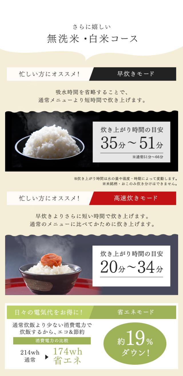 ご飯をさらに美味しく炊き上げるこだわりの炊飯器です。