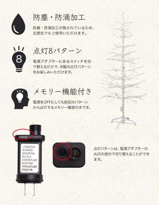 クリスマスツリー LED ブランチツリー スリム ホワイト 120cm 欧米 おしゃれ 木 枝ツリー イルミネーション ライト クリスマスツリー イルミネーション