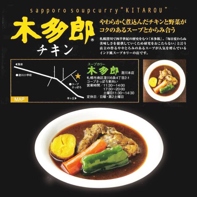 | 商品説明 | 札幌スープカレーの老舗「木多郎」のチキンスープカレーです。 | ||
