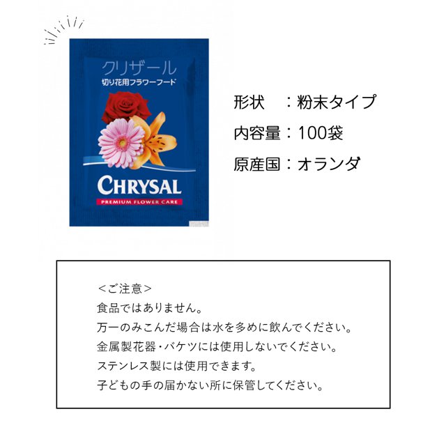 クリザール 100袋 切り花 延命剤 切花 長持ち 自宅用 栄養剤 活力剤 仏花 花束 切り花フラワーフード 小袋(粉末)