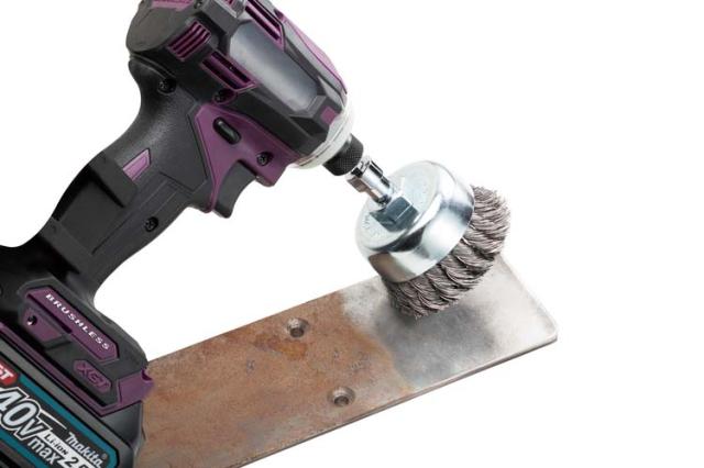 ●ディスクグラインダー用アクセサリーを充電インパクトドライバーや電気ドリルで使用。