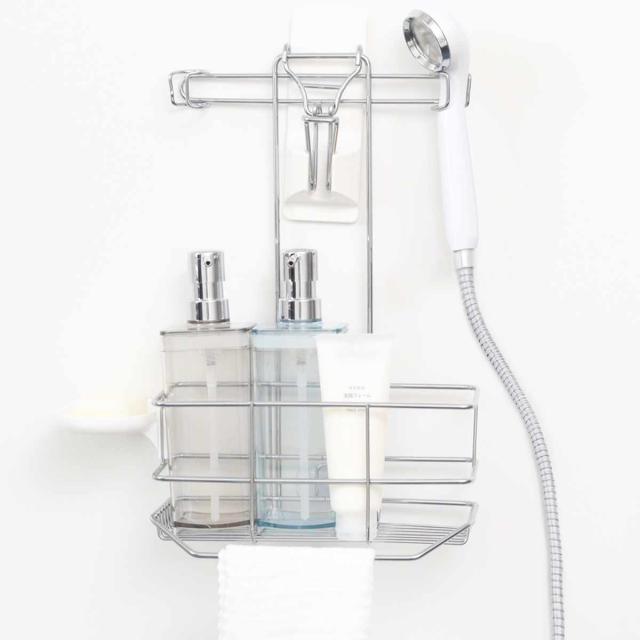 シャワーまわりにバス用品をまとめて収納できるシャワーフックです。シャワーフックを利用して簡単に収納を増やすことができるので便利です。