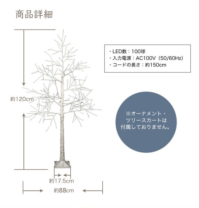 ポイント10倍 クリスマスツリー 120cm おしゃれ 北欧 ブランチツリー ホワイト ファイバーツリー 枝ツリー 白樺ツリー