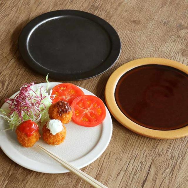 プレート 22cm ディープブレス Deep Breath 皿 食器 洋食器 陶器 信楽焼 日本製 ( 食洗機対応 電子レンジ対応 中皿 丸 平皿 白 黒 取り皿 銘々皿 メインディッシュ 和モダン リム皿 )