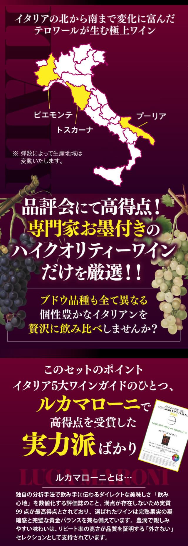 【1,600円/本 送料無料】 全て高得点! 贅沢イタリアワイン 7本セット 19弾 ルカ マローニ 96点オーバーのみ 750ml 品種別 浜運