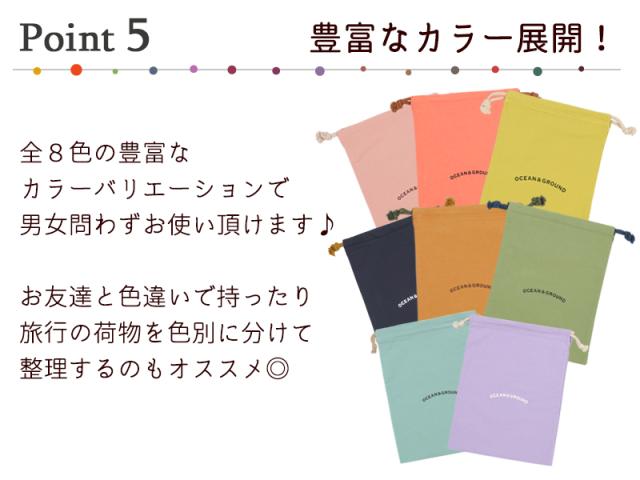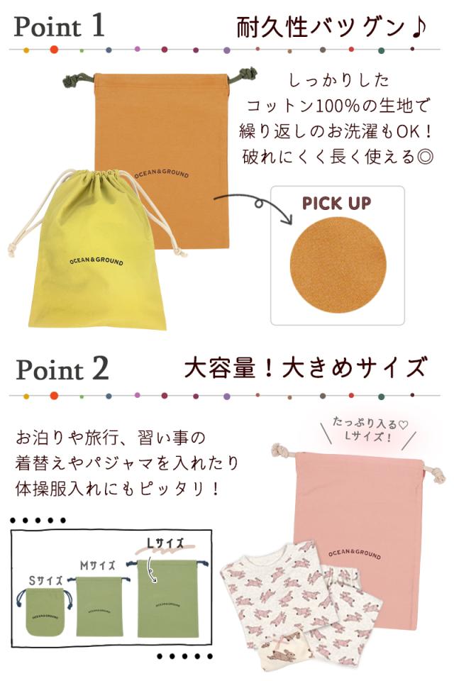 オーシャンアンドグラウンド 巾着袋 大サイズ 女の子 男の子 巾着 かばん バッグ ポーチ 子供 キッズ 子供服 《レビュー記入でメール便無料》 大人 くすみカラー シンプル 可愛い おしゃれ 給食袋 体操服袋 通園 通学 旅行 コットン : Ocean & Ground 1815901