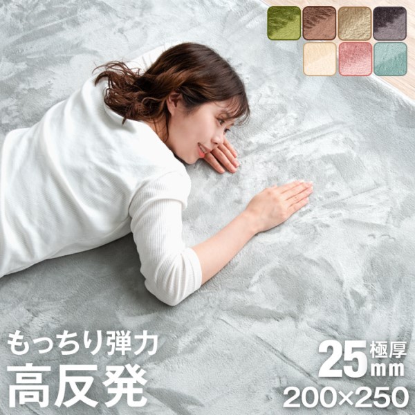 ラグ ホットカーペット2点セット 防音&クッション性UP 高反発ラグ 極厚25mm 3畳用 遠赤カーボン 速暖 200×250 防音 滑り止め付 マイクロファイバー ラグ ラグマット カーペット あったか_s