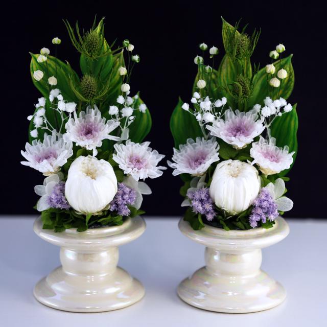 新盆 初盆 プリザーブドフラワー 仏花 仏壇用 即日配送 お供え 仏壇用 法事 供花 【2個セット ことね菊Vase】 喪中はがき お悔やみ 枕花 送料無料 アートフォーシーズン
