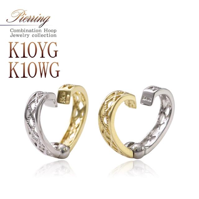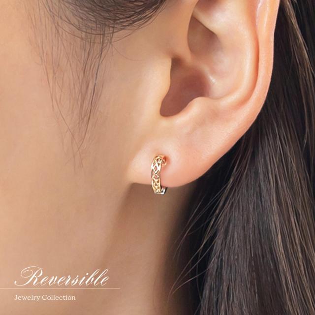 ピアスみたいなイヤリング ピアリング 正規品 フープ イヤリング 小さめ ハート かわいい 10金 ホワイトゴールド K10 ゴールド 10K レディース リバーシブル 透かし プレゼント ジュエリー 女性 妻 彼女 母の日 ギフト 2026 コンビジュエリー