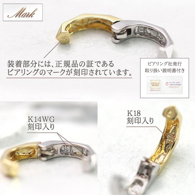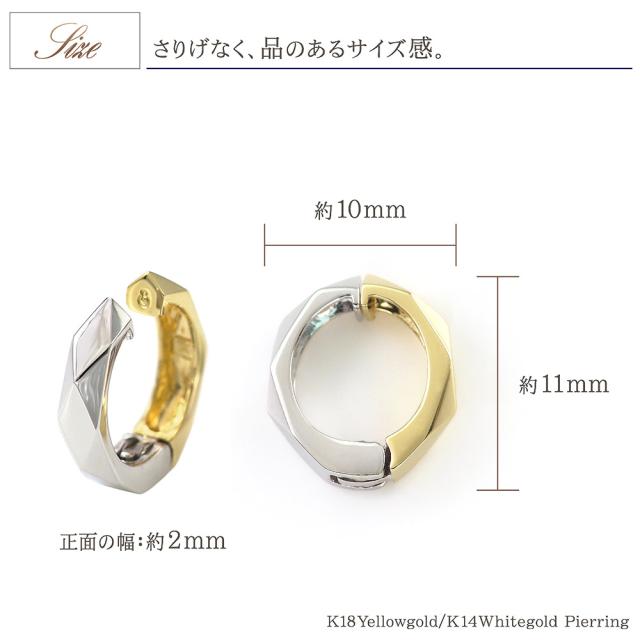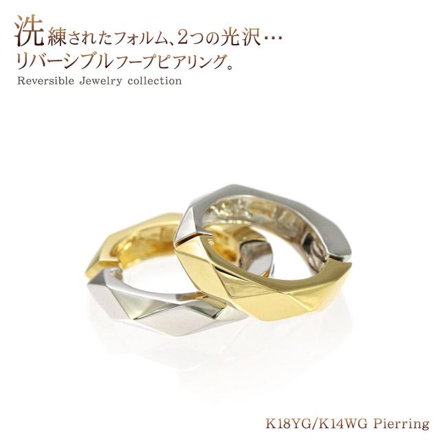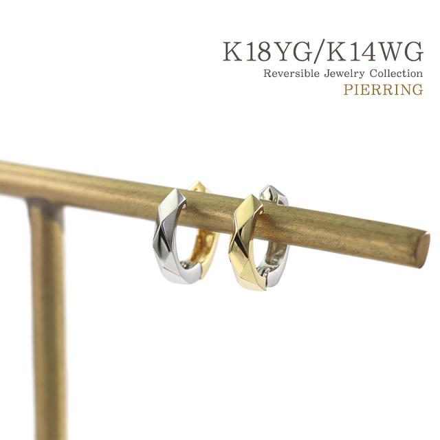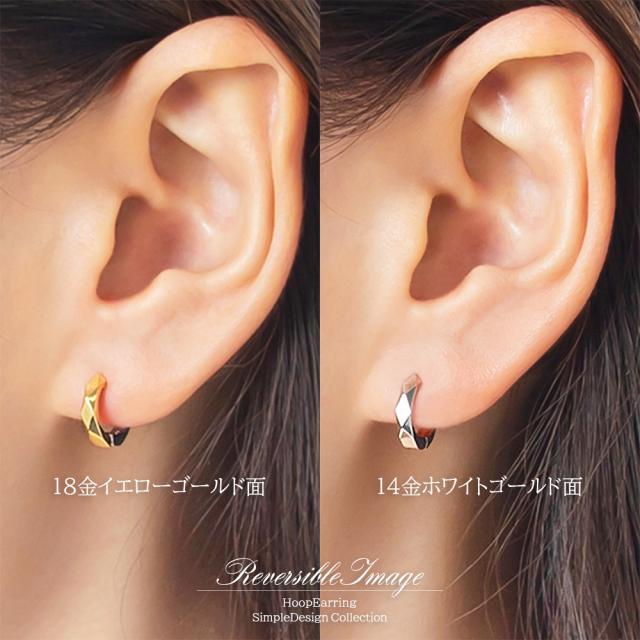 | 商品名 | ・18金イエローゴールド (K18YG) × 14金ホワイトゴールド (K14WG) リバーシブル フープ ピアリング |