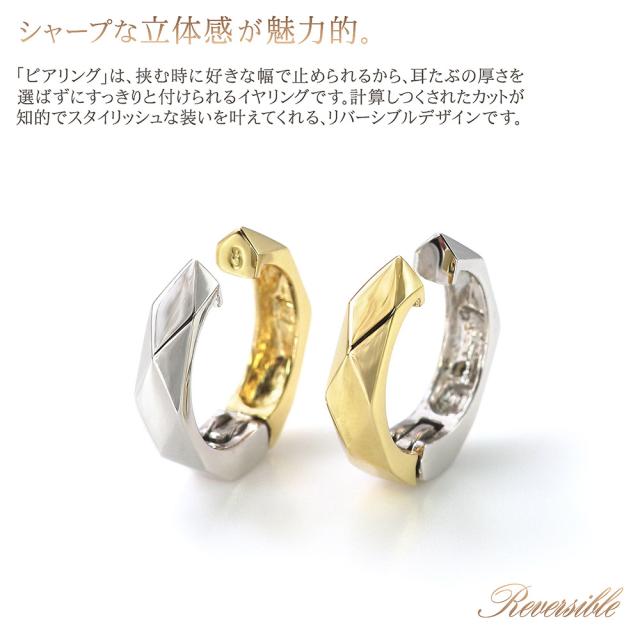 フープイヤリング シンプル ピアリング 正規品 ピアスみたいな イヤリング 18金 ゴールド イヤーカフ 14金 ホワイトゴールド 小ぶり 14K K14 18K K18 リバーシブル レディース プレゼント ジュエリー 女性 母の日 ギフト 2026 コンビジュエリー