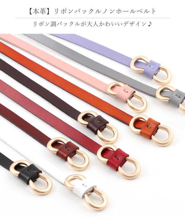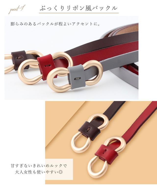 【リボンバックルが大人可愛い牛革レザーベルト】