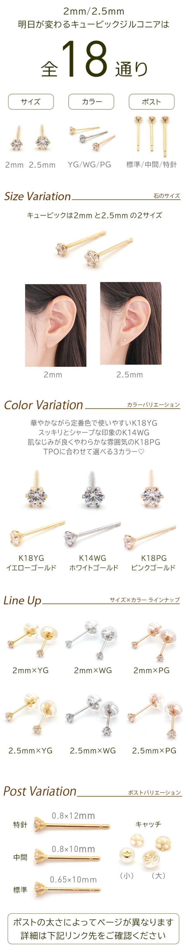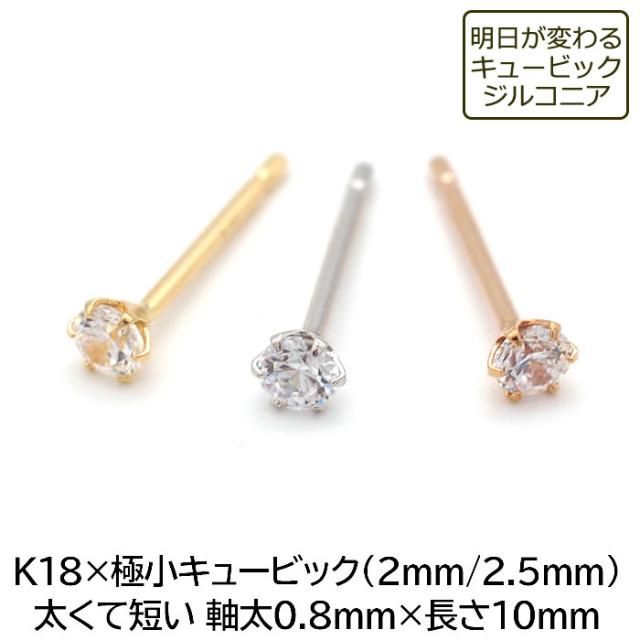 当店オリジナル セカンドピアス つけっぱなし K18 18金 ジルコニア 2mm 2.5mm 中間ポスト 軸太0.8mm 長さ10mm 金属アレルギー対応 片耳 1個 日本製