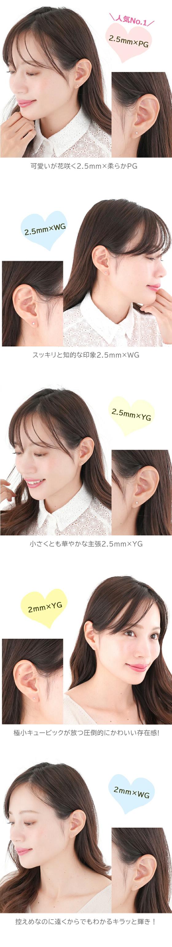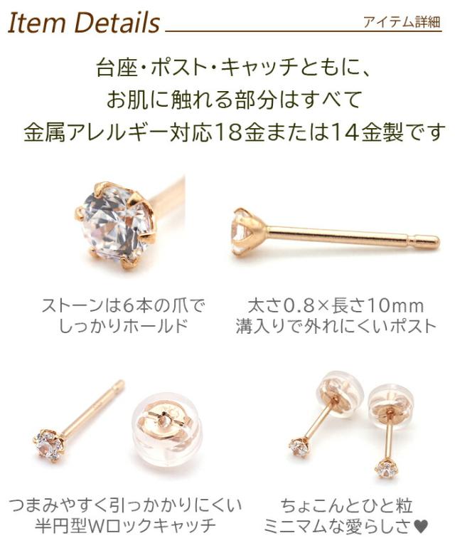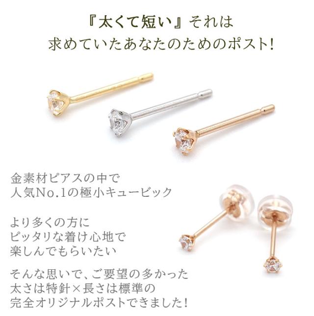 | 【オリジナルサイズ】軸太0.8mm×長さ10mm 明日が変わるキュービックジルコニア 2mm/2.5mm K18 K14 セカンドピアス 金属アレルギー対応 |