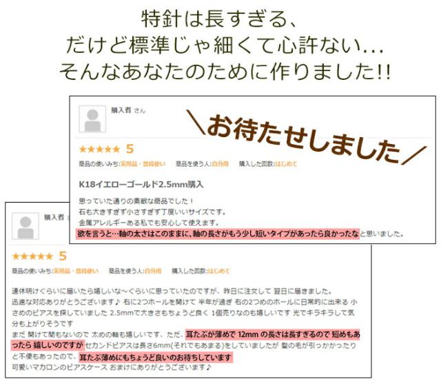 まだホールが不安定な時期だったり、ピアスの扱いになれていなかったりで太くて長いポストの方が扱いやすいため特針タイプをおすすめしています。