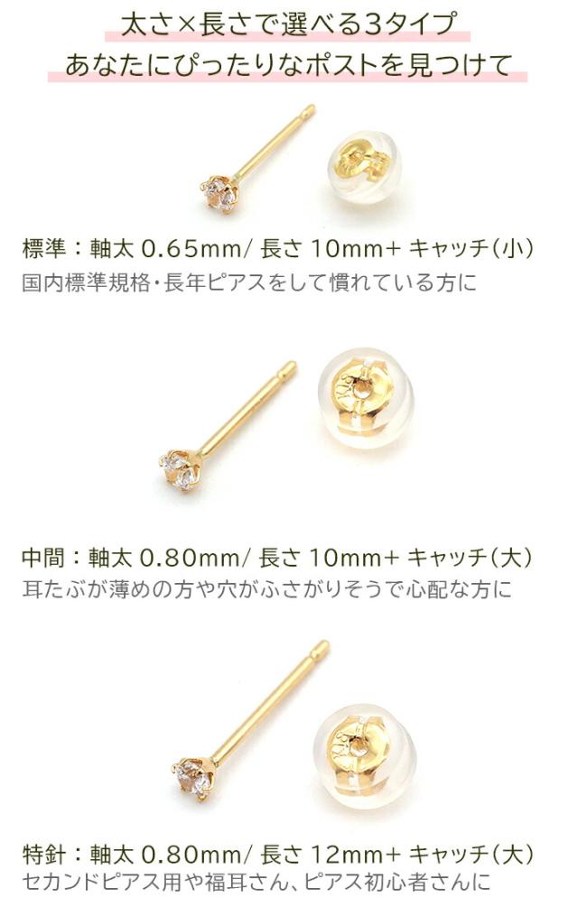 つけっぱなしにするセカンドピアスだから寝るときに横になるとポストが刺さってしまうことや、耳たぶが薄く後ろ側に大幅にはみ出してしまう、そんなときには、ぜひともこの「中間」サイズを使ってみてください。