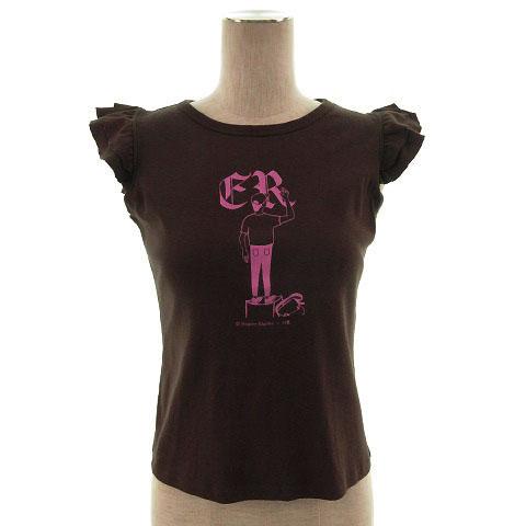 【中古】23区 オンワード樫山 カットソー ノースリーブ フリル プリント ブラウン 茶 38 レディース