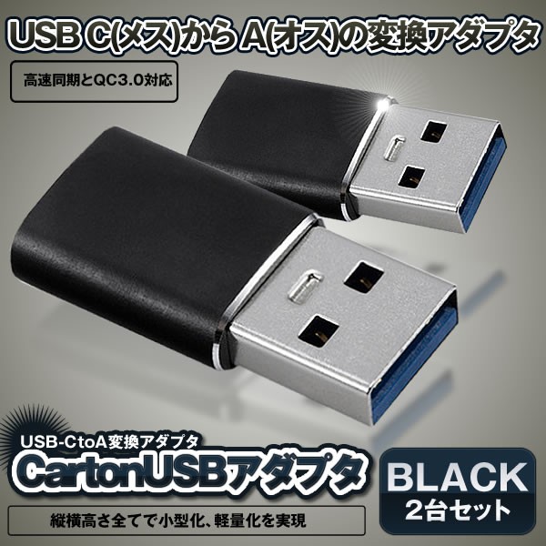 USB C to USB A 変換アダプタ ブラック 2個セット 両面 USB3.0 高速データ伝送 usb type c 変換 スマホ パソコン等 2-CTOAADA-BK