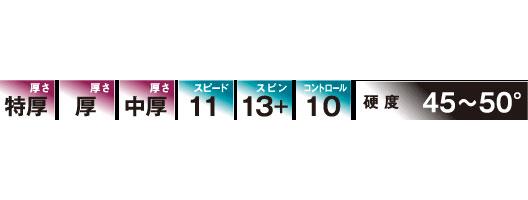 硬めのパワースポンジを組み合わせる事で十分な弾みと飛距離を持ち、相手の回転に負けない力強いドライブ攻撃に最適なラバーです。*NSS: ノンスリップシート
