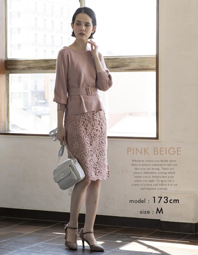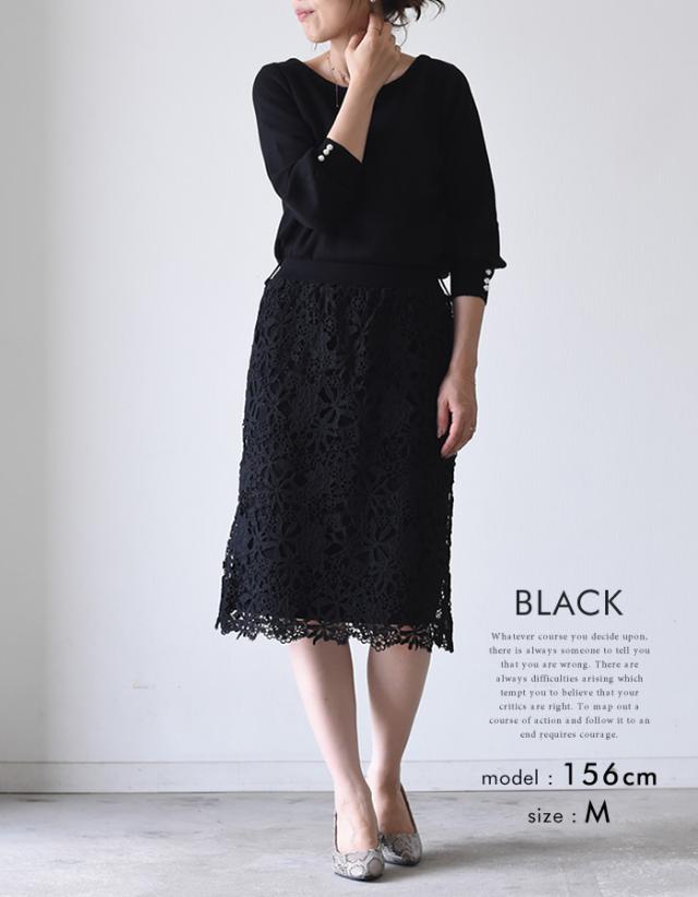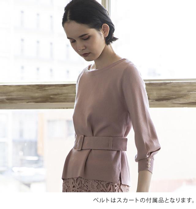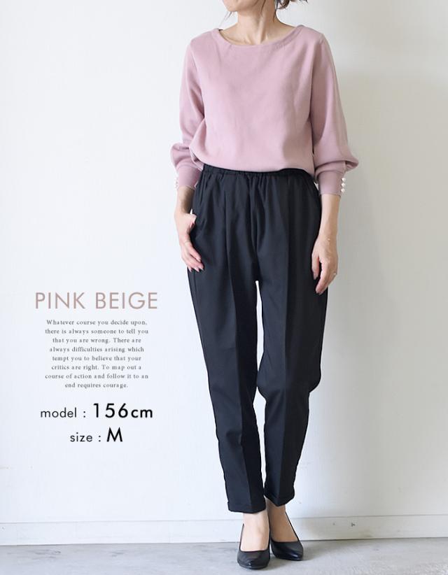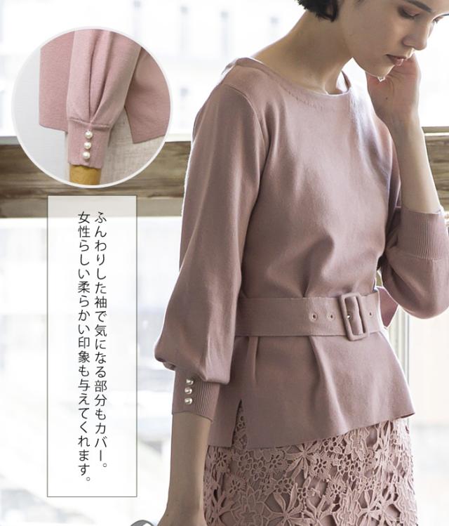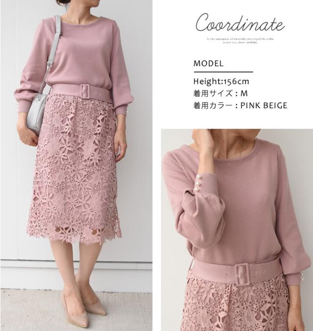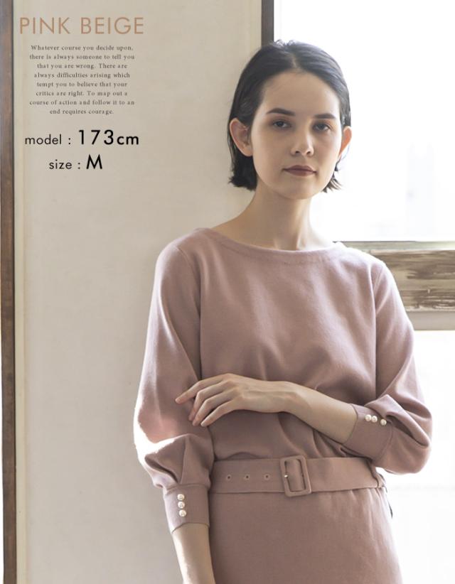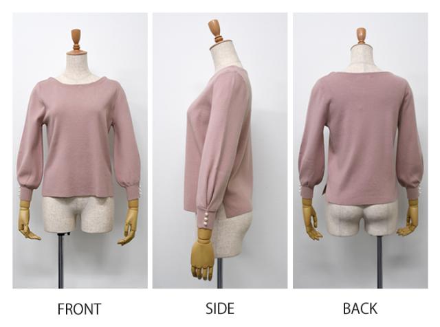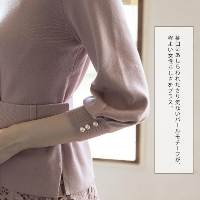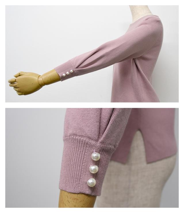 袖口のパールデザインが大人可愛いニットトップス。