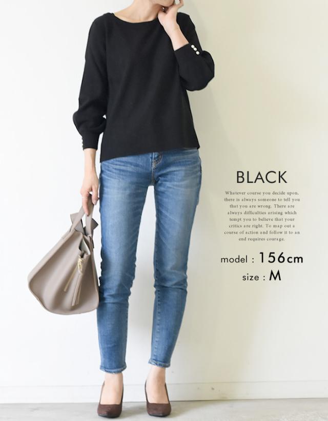 ≪ゆうメール便配送30・代引不可≫バルーン袖ニットトップス レディース 春 秋 冬 M L 七分袖 八分袖 秋新作 | アクアガレージ aquagarage