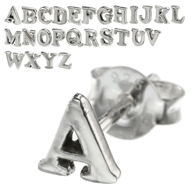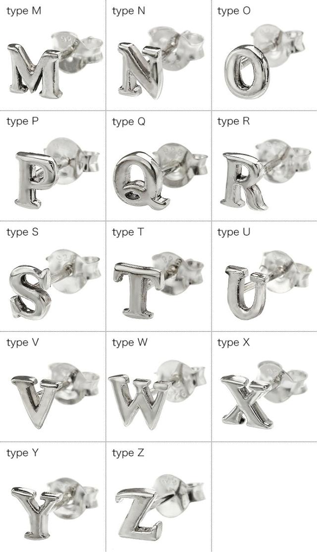 在庫限り アルファベット スタッド ピアス イニシャル シルバー925 アクセサリー ペア メンズ レディース シルバーピアス 片耳用 (1個売り)