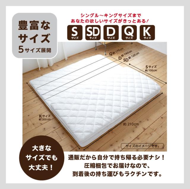 - 主人の敷布団がへたって来たので買い替えの為に購入しました。探していたのは軽くて1枚でも床に着かないくらい厚さのあるものだったので、この商品は満足のいく物でした。アウトレットとの事でしたがカバーを掛ける...