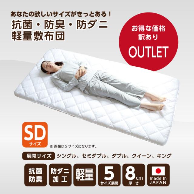 【訳あり】【アウトレット】敷き布団 セミダブル 抗菌 防臭 防ダニ 軽い 厚さ8センチ 自社工場生産《抗菌防臭防ダニ軽量敷きSD》