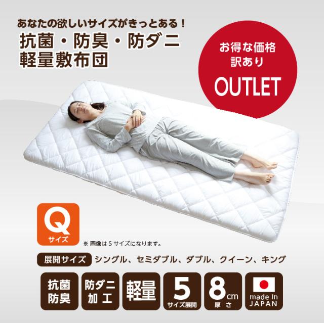 【訳あり】【アウトレット】敷き布団 クイーン 抗菌 防臭 防ダニ 軽い 厚さ8センチ 自社工場生産《抗菌防臭防ダニ軽量敷きQ》