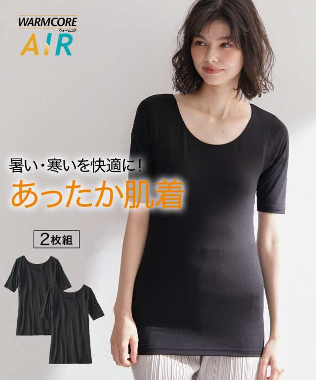 暑がりさんの冬インナー 襟ぐり広め半袖インナー2枚組(吸湿発熱・吸汗速乾・UVカット) ウォームコアAIR