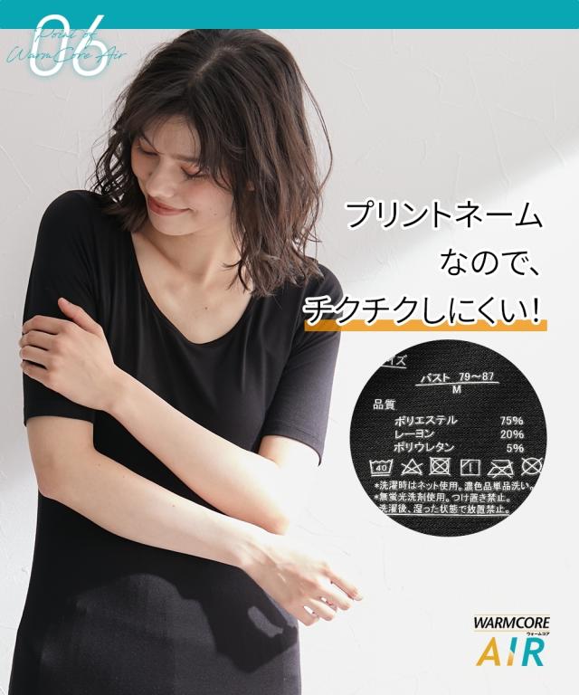 インナー レディース 冬の暑がりさん 襟ぐり広め 半袖 2枚組 M/L 吸湿 発熱 吸汗 速乾 UVカット ウォームコアAIR 黒 肌着 ニッセン nissen
