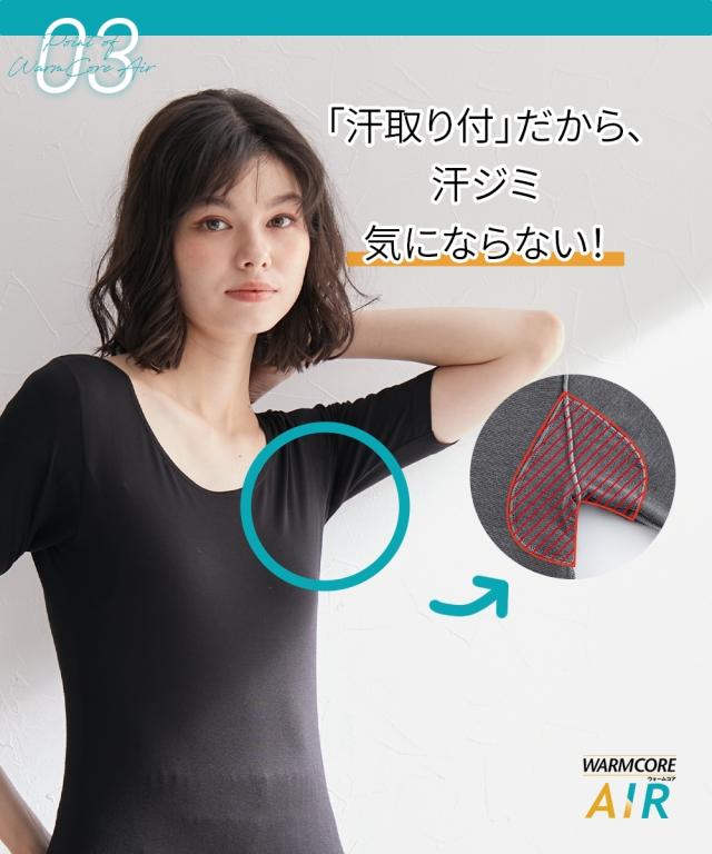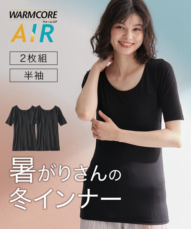 暑がりさんの冬インナー 襟ぐり広め半袖インナー2枚組(吸湿発熱・吸汗速乾・UVカット) ウォームコアAIR