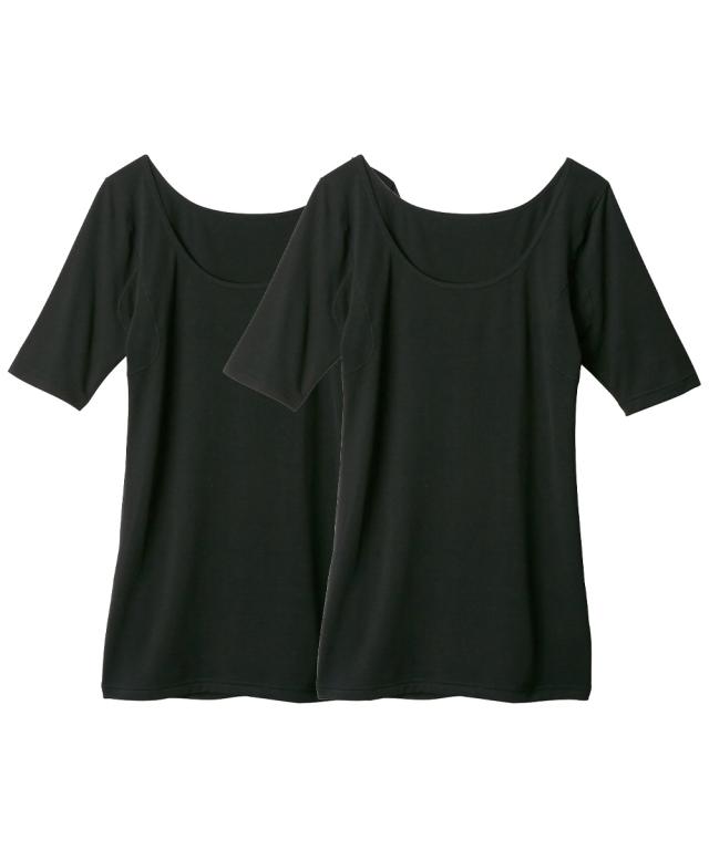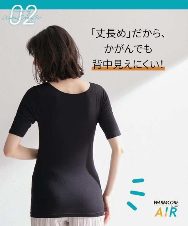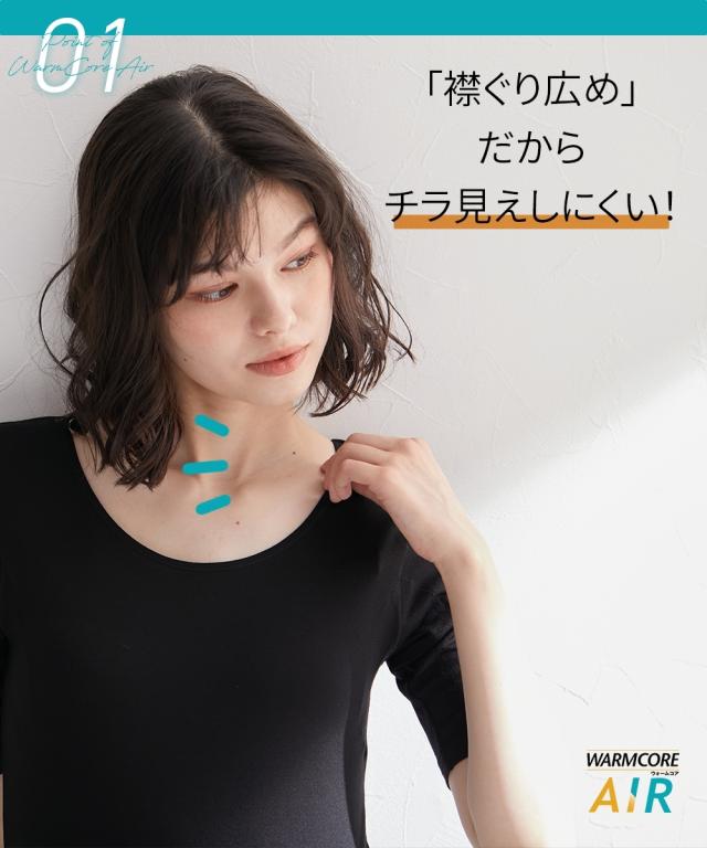 暑がりさんの冬インナー 襟ぐり広め半袖インナー2枚組(吸湿発熱・吸汗速乾・UVカット) ウォームコアAIR