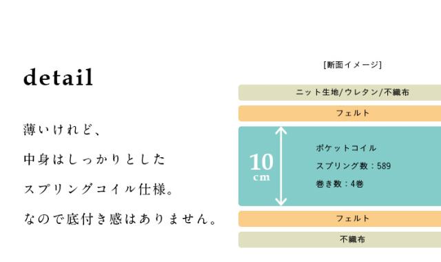 内部:ポケットコイルスプリング、ウレタンフォーム、フェルト(ポリエステル100%)