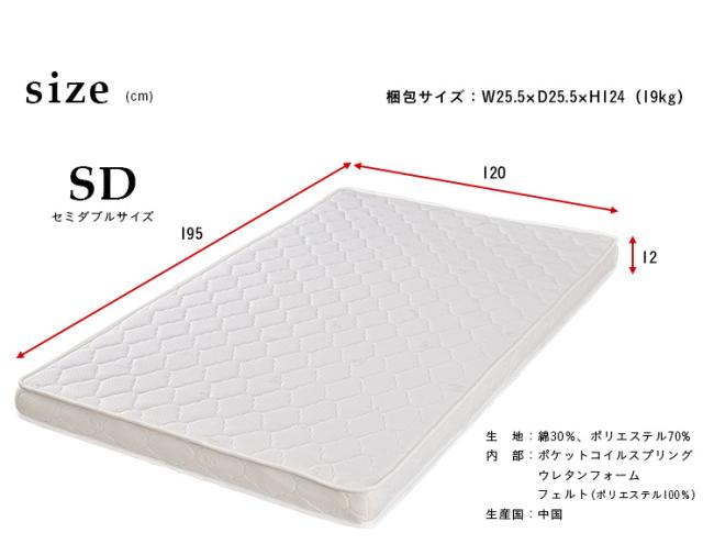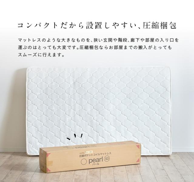 親子ベッドやロフトベッドに!【ポケットコイル/圧縮ロール梱包】薄型タイプ マットレス Pearl(パール) セミダブルサイズ 120x195cm セミダブル ポケットコイルマットレス マット mattress 二段ベッド セミダブルベッド