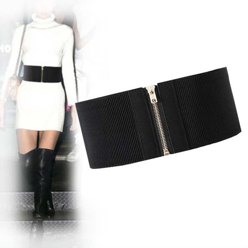 LAZA 【ブラック】T【ジッパー 幅広 ゴムベルト】ゴールド 金 レディース エレガント コルセットベルト サッシュベルト