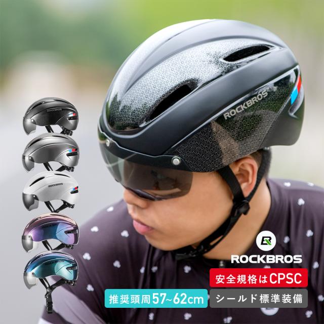 ヘルメット 自転車 大人 学生 通学 ロードバイク シールド付属 57cm-62cm対応 ロックブロス ROCKBROS