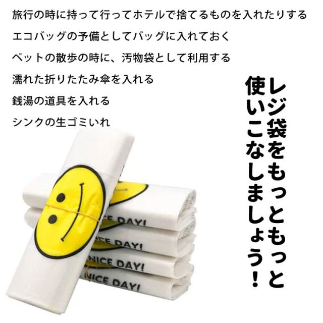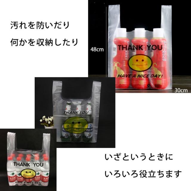 レジ袋 大サイズ 手提げ袋 笑顔デザイン スマイルビニール袋 2束計100枚 サイズ約30×48CM OPPBIG3048