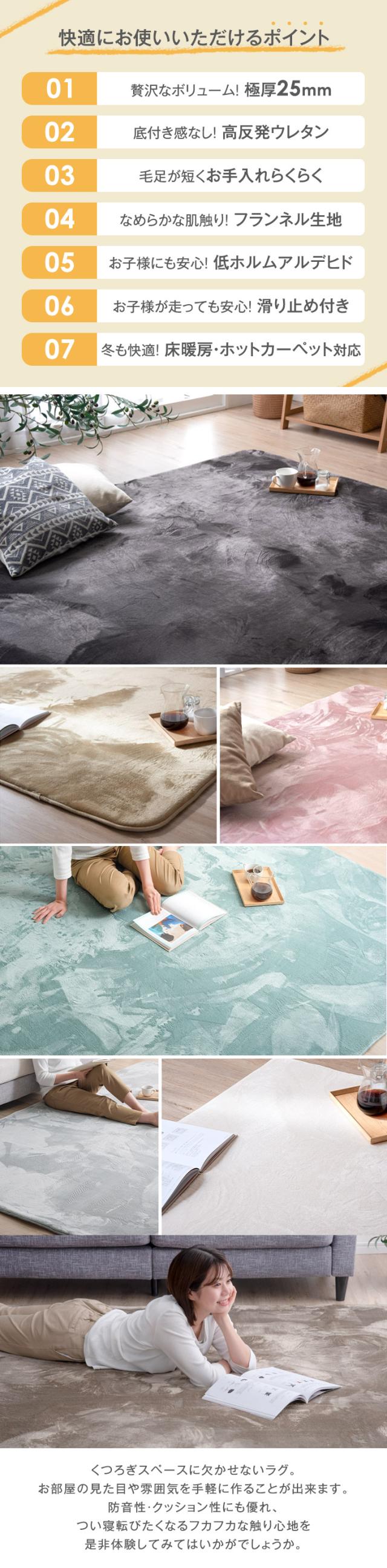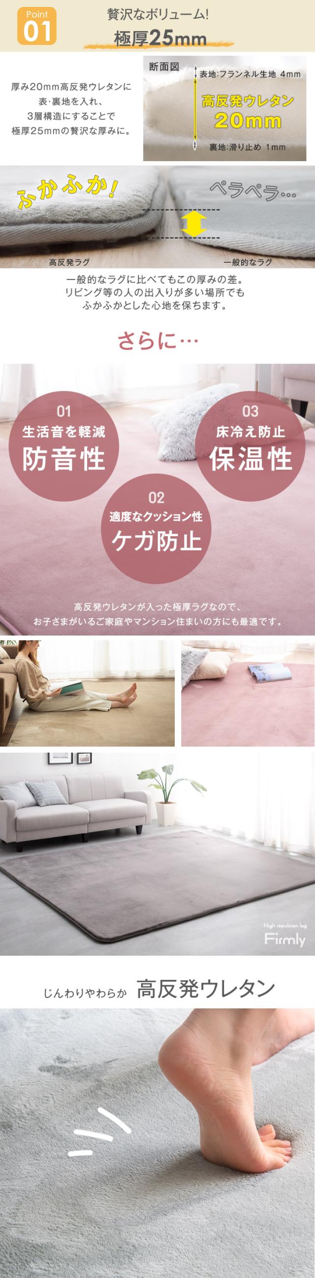 底つき感軽減の高反発ラグ 極厚2.5cm ラグ 厚手 低ホル 200×250cm 高反発ラグ フランネルラグ 滑り止め付 オールシーズン マイクロファイバー ラグマット マット ホットカーペット対応【商品番号:65010003】