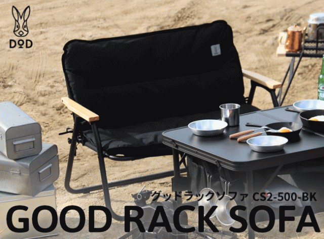 DOD ソファ 2人掛けソファ ワンタッチ 車載棚 耐荷重200kg 棚 車内 ラック収納 折りたたみチェア アウトドア キャンプ グッドラックソファ CS2-500-BK ブラック メーカー直送