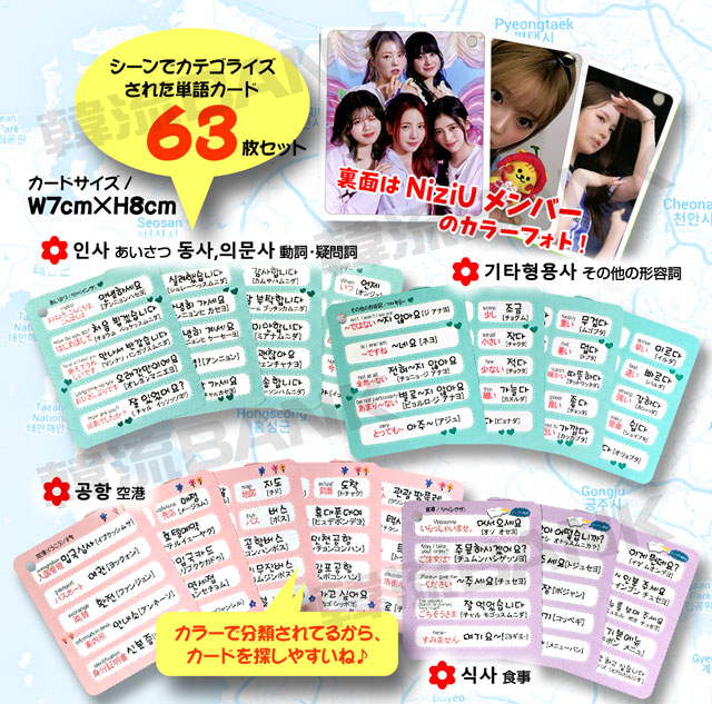 【送料無料・速達】NIZIU (ニジュー) グッズ - 韓国語 単語 カード セット (Korean Word Card) [63ピース] 7cm x 8cm SIZE