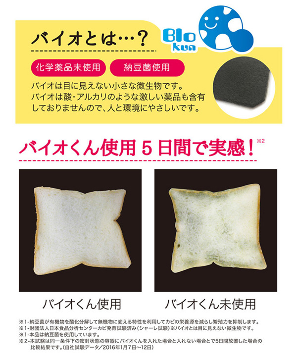 バイオは、カビの繁殖や汚れの原因を食べてクリーンにしてくれます。