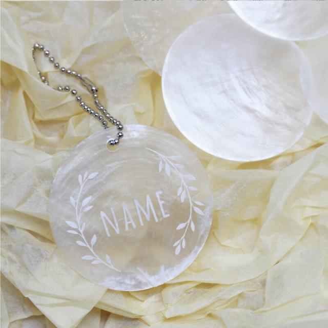 \ 海外の結婚式で流行中♪カピスシェル席札 / 透け感がオシャレで可愛いカピスシェルを使った席札 キーホルダーにもなる!