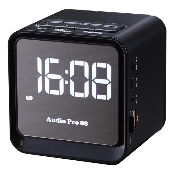 | 商品説明 | ●ラジオ:ワイドFM ●USB/SDポート(MP3) ●LINE INポート(外部プレーヤーから音声入力) ●電源コードの長さ:80cm ●クロックラジオ付きのポータブルミュージックスピーカー ●LINE INポート付きで外部から音声入力が可能 ●充電時間:1時間 ●運転時間:6時間 |
