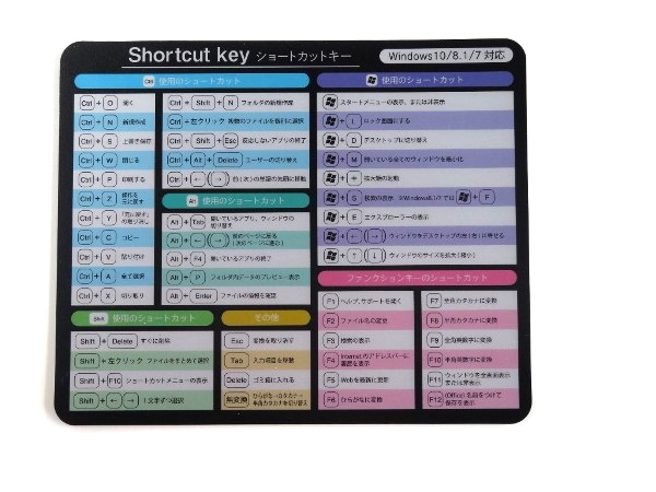 ショートカットキーの内容が印刷されており便利です。