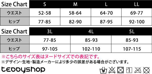 ●こちらのサイズ表はヌードサイズでの表記です。商品・着用者によっては多少の誤差がある場合がございます。