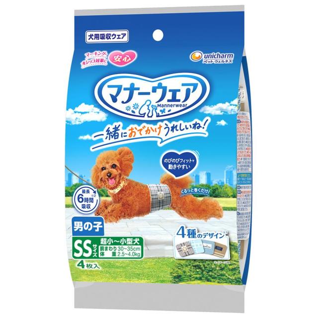 ユニ・チャーム マナーウェア 男の子用 SSサイズ 4種のデザインパック 4枚 返品種別B