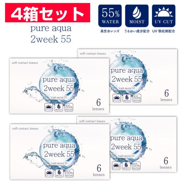 4箱セット ピュアアクア ツーウィーク 55 UV Moist 1箱6枚 2週間交換 pureaqua 2week ZERU コンタクトレンズ UV加工 UVcut モイスト 2ウィーク ピュアアクアツーウィーク55 ソフトコンタクトレンズ コンタクト
