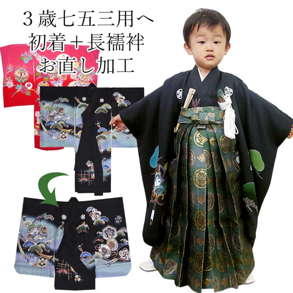 七五三用に初着+長襦袢を袖丸み付け・肩上げ・腰上げ加工 初着の当店到着後、発送まで3週間 【 初着 祝着 産着 男の子 子供
