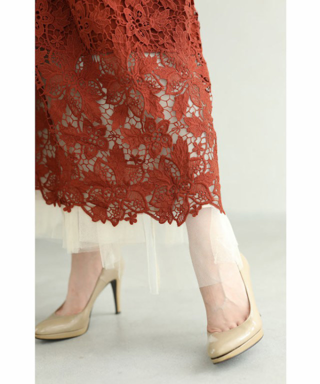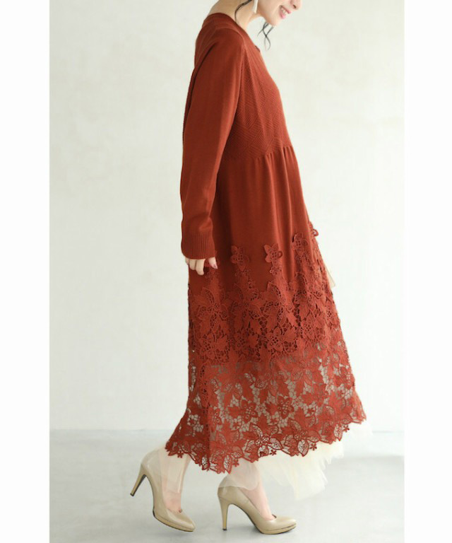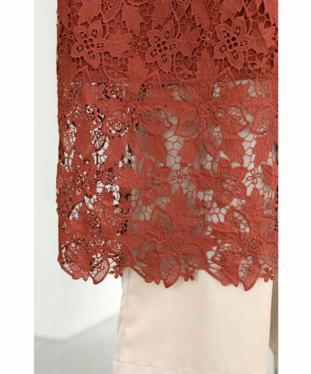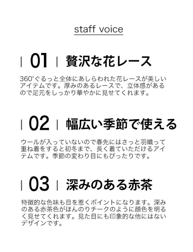360°ぐるっと全体にあしらわれた花レースが美しいアイテムです。